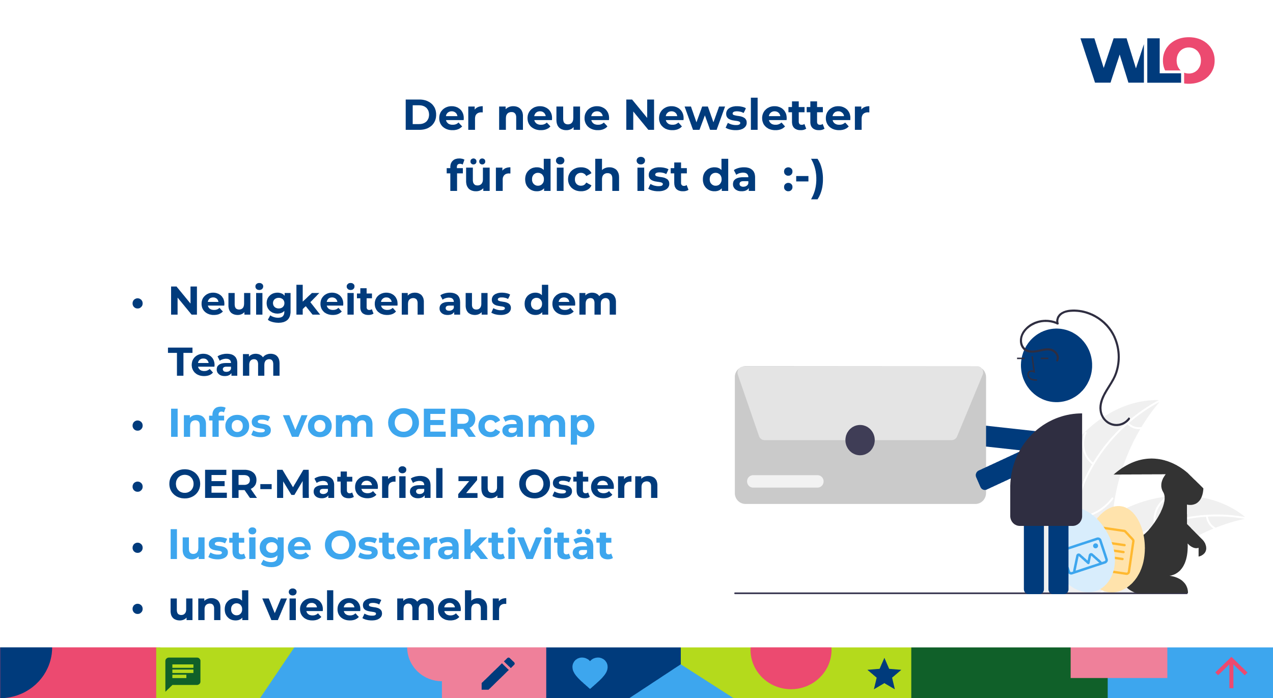 Frühlingshafte Ostergrüße Liebe WLO-Community, spürt ihr auch schon die Vorfreude auf Ostern? 🐰🌷 Begleitet von Vogelgezwitscher und Frühlingsduft gibt’s heute den neuesten Newsletter, vollgepackt mit Neuigkeiten aus dem WLO-Team, frischen Infos vom OERcamp, OER-Material und einer Osteraktivität für […]